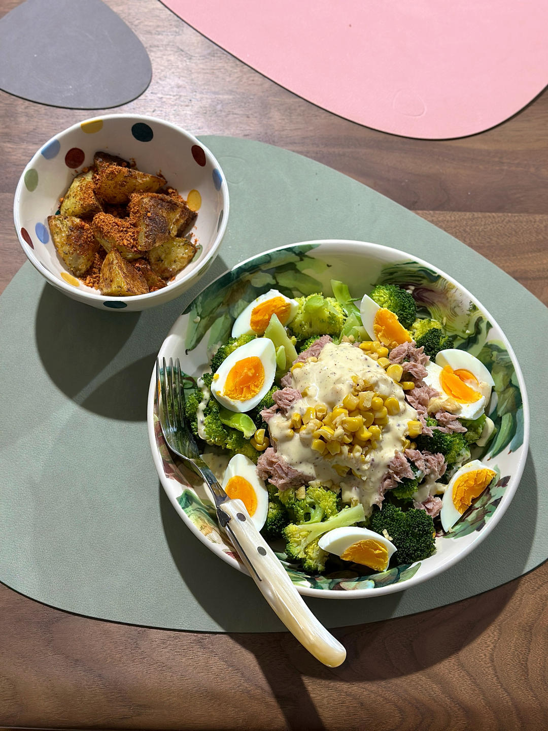 烤土豆、金枪鱼鸡蛋玉米西兰花沙拉