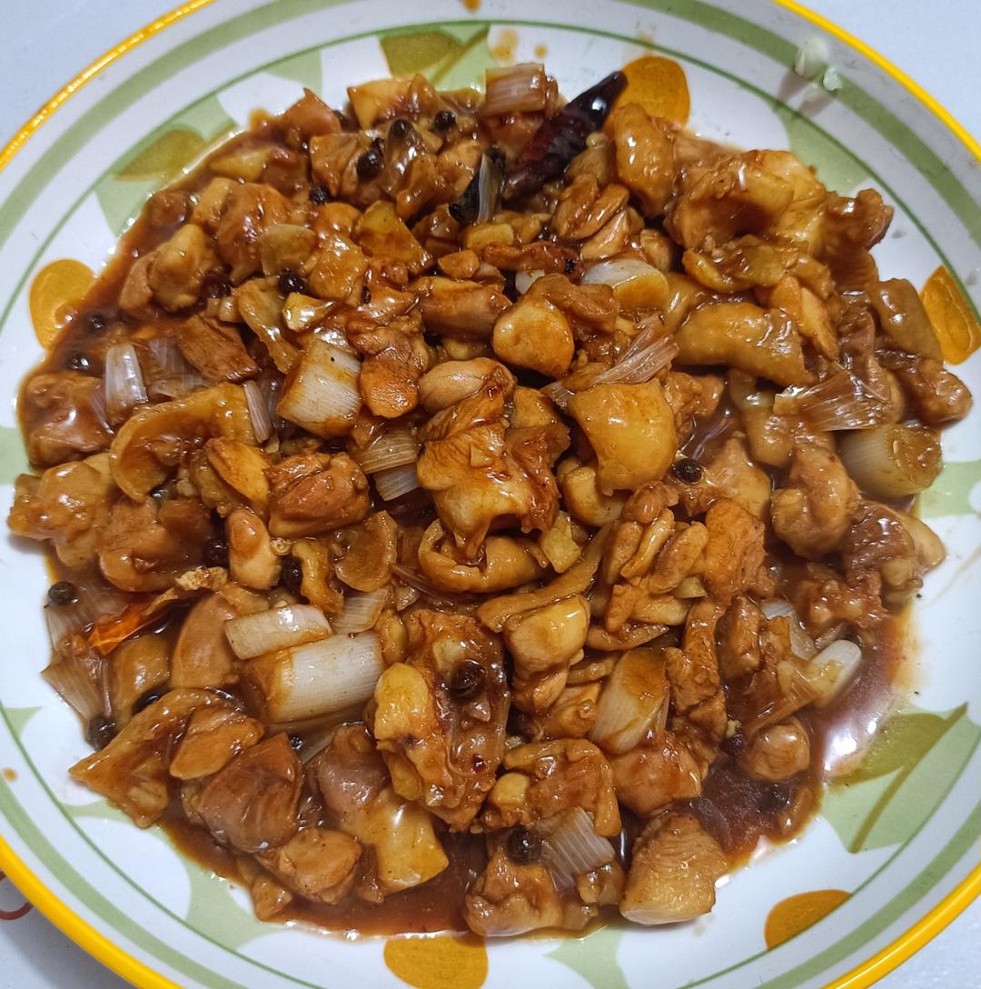 没有花生米,感觉自己做成了红烧鸡丁,勾芡汁水过多。