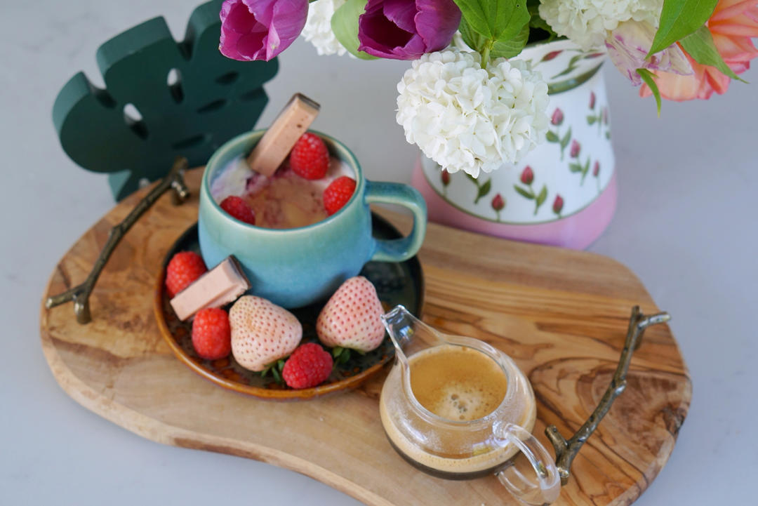 今天的阿芙佳朵🍨致敬美好的夏天,树莓冰淇淋打底,配树莓和白草莓,还有从香港带回来的日本草莓🍓KitKat。#午餐•202...