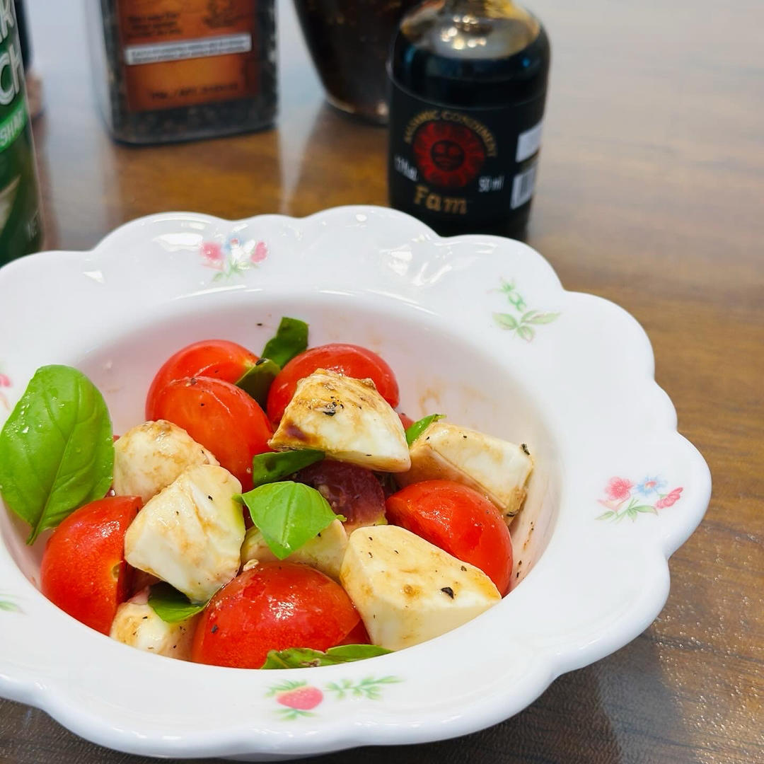女儿送的意大利香醋配上马苏里拉奶酪球,浓浓的意大利风味🇮🇹再来一盘青酱意面,帕玛森奶酪和松仁在嘴里越嚼越香😌#午餐•20...