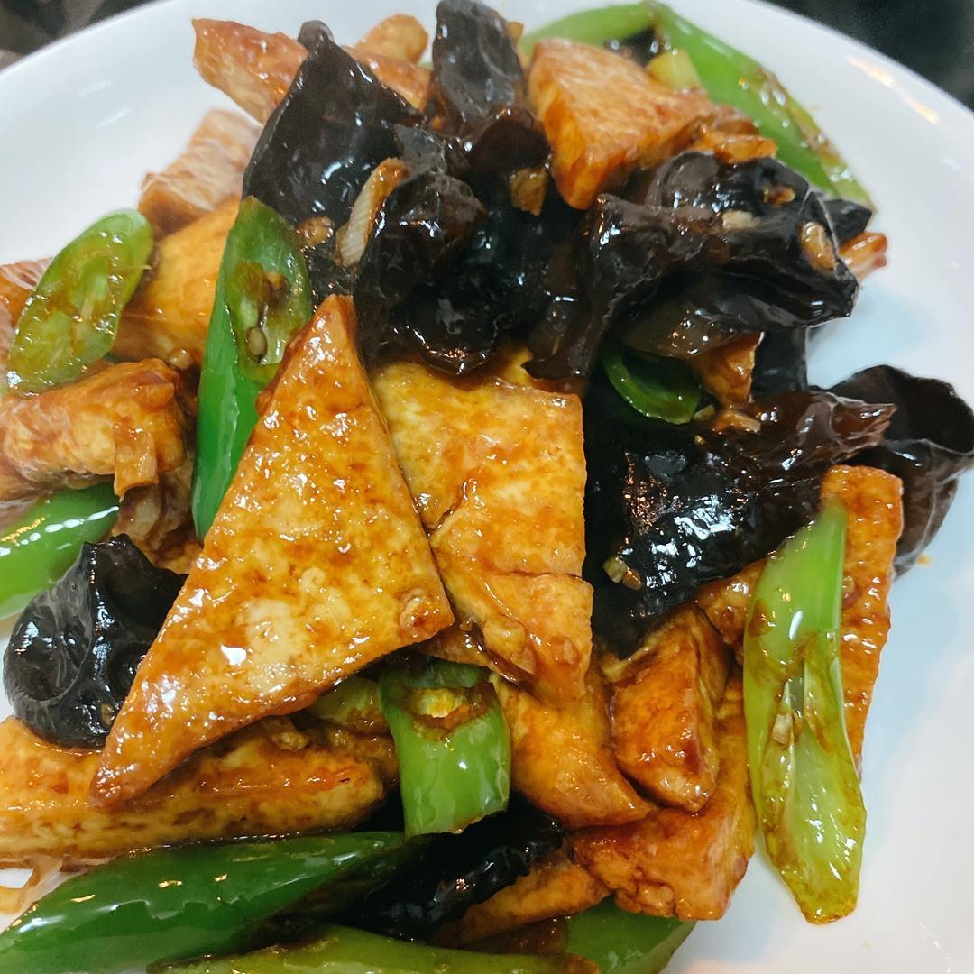 三色荟萃(青椒,煎炸豆腐,黑木耳