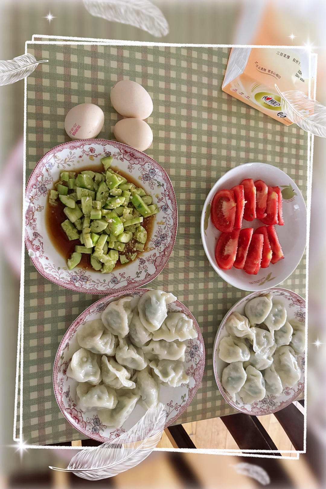 今天是早上9:50的高铁🚄,老妈一大早就把饺子🥟煮好了。吃了点小菜和8个饺子...
