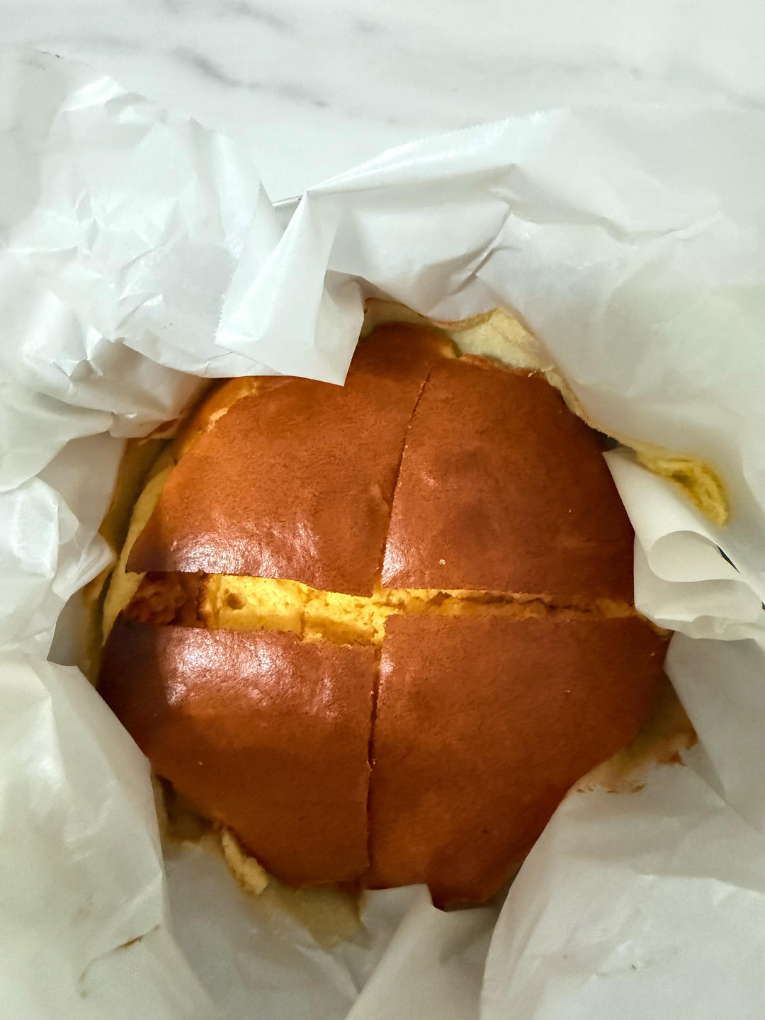 单火风炉,160°,18分钟。加高款六寸模具。我觉得可以两倍材料用加高宽六寸模具。