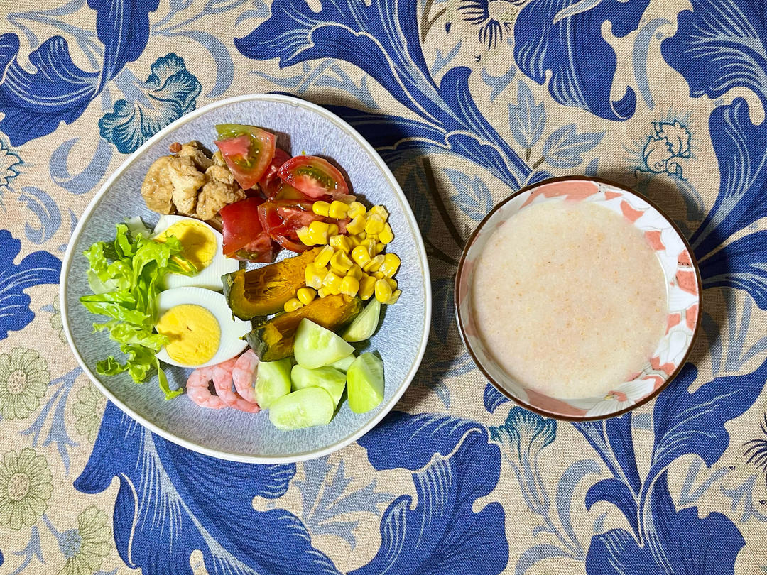 沙拉,淮山粉糊,玉米。