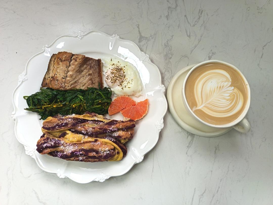今日早餐🥨🥗🍑☕️🍗