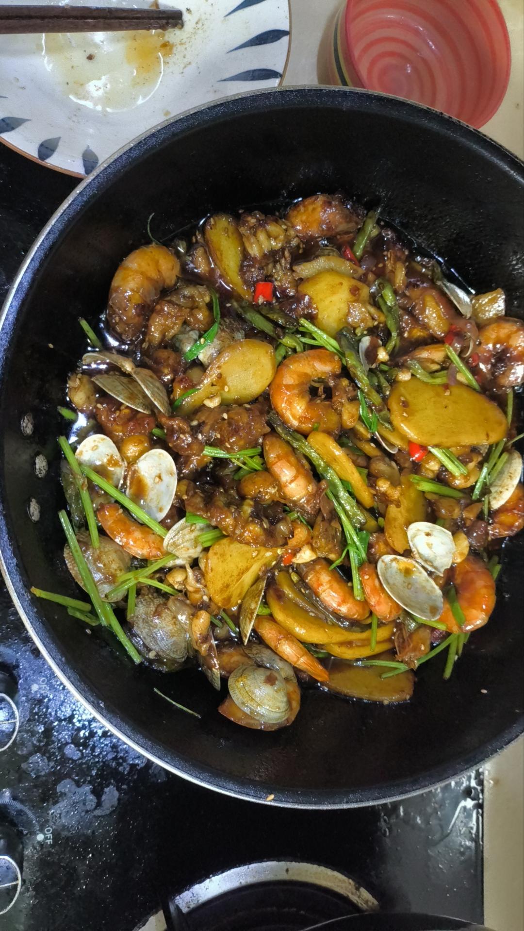 再放一勺湖南剁辣椒,更有味道,出锅前再放一次蒜末。非常香。买了12一斤的大花甲,一盘才9块,自己做好划算。#晚餐•202...