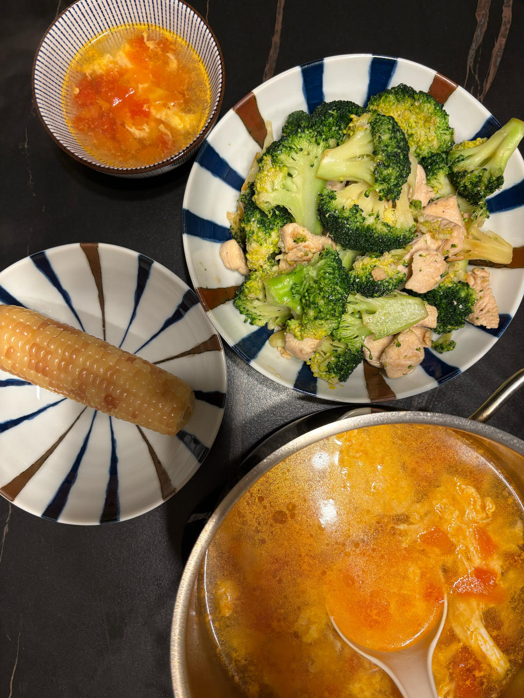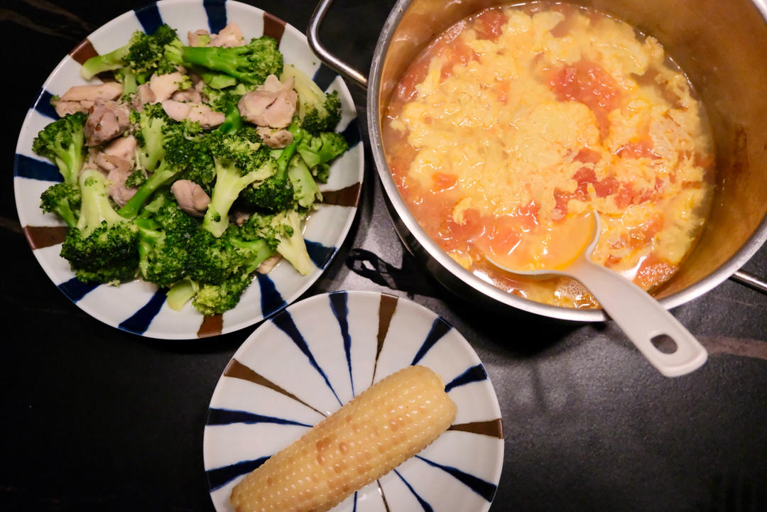 一顿配番茄鸡蛋汤一顿配丝瓜鸡蛋汤