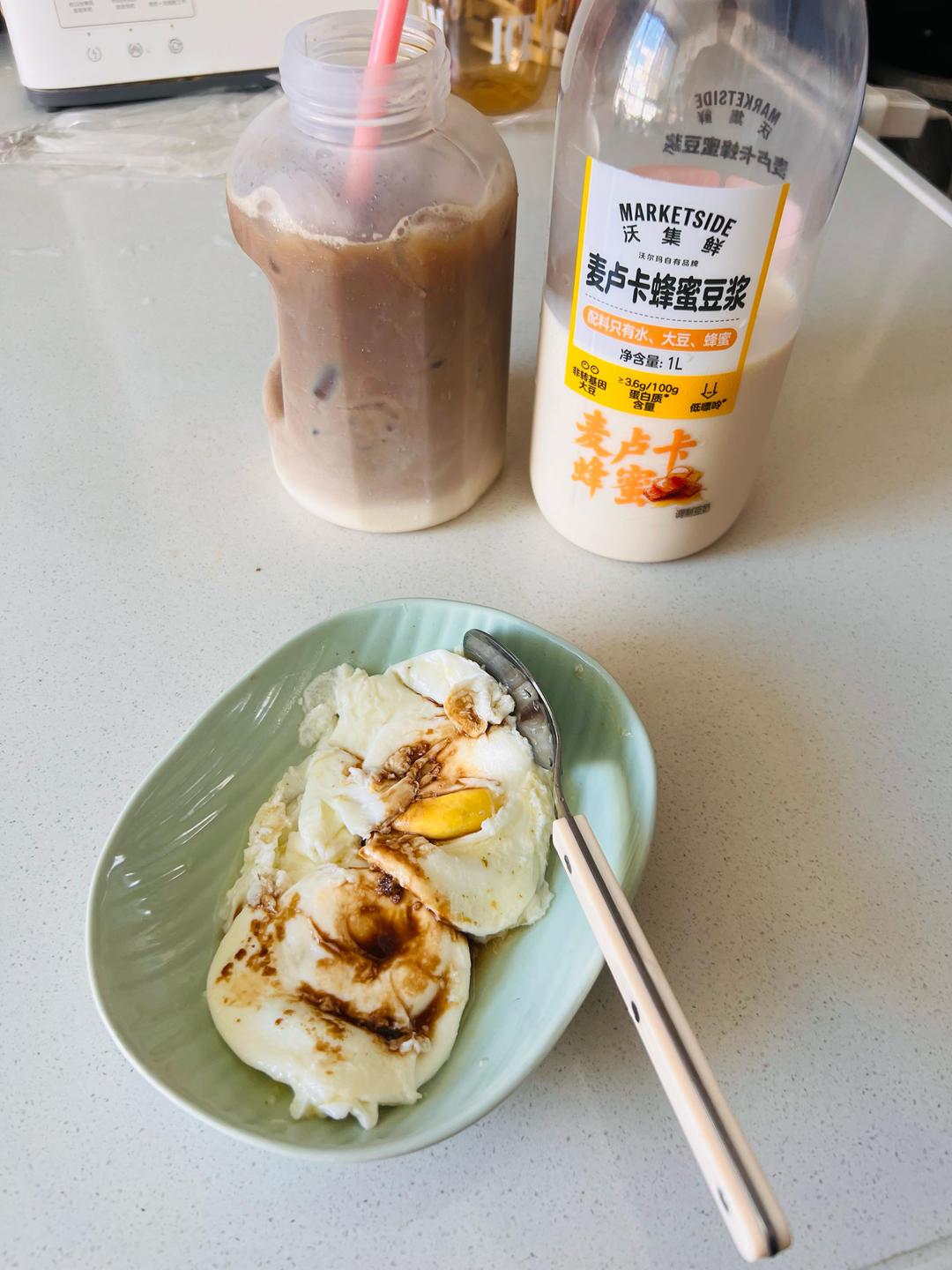 豆乳拿铁,水煮荷包蛋
