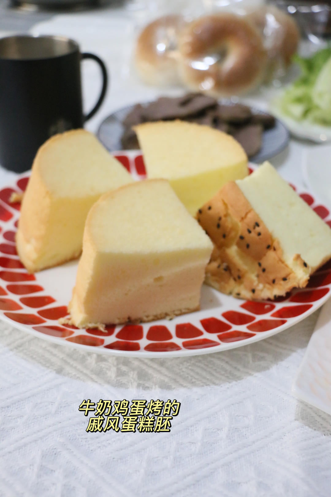 自己烤的戚风蛋糕,酱牛肉,水煮西兰花,鸡蛋,也算是营养丰富的一餐。