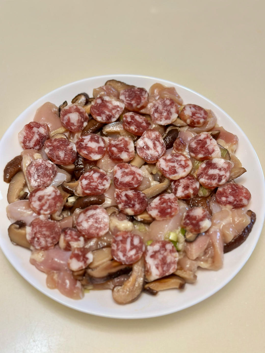 今晚 腊肠香菇蒸鸡腿 手撕包菜 杂粮饭