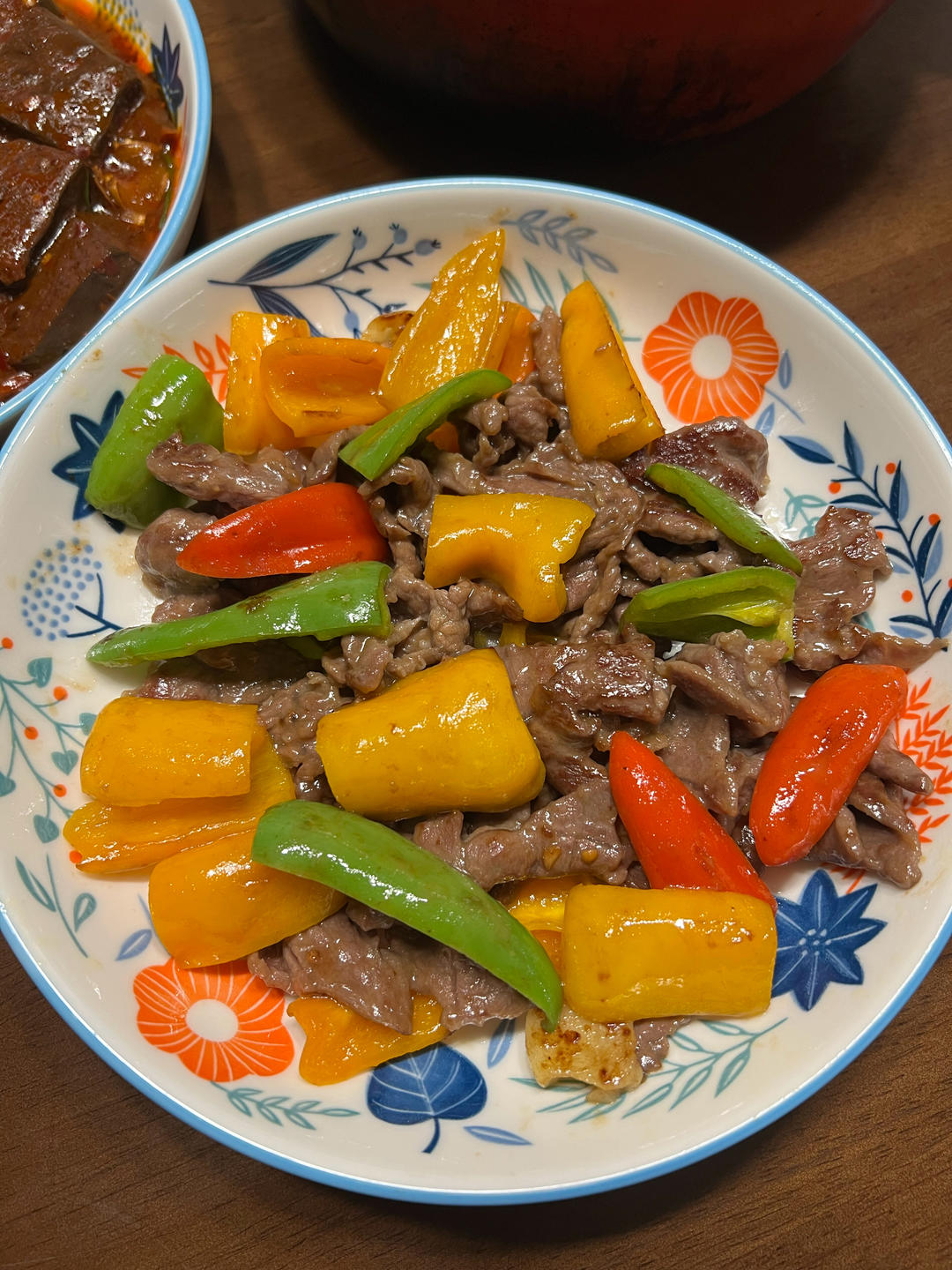 腌肉用了另一个菜谱的做法(生抽、蚝油、糖、顺德好朋友、生粉、油),没想到5分钟也入味了。彩椒用的是水果彩椒,一点都不辣,...