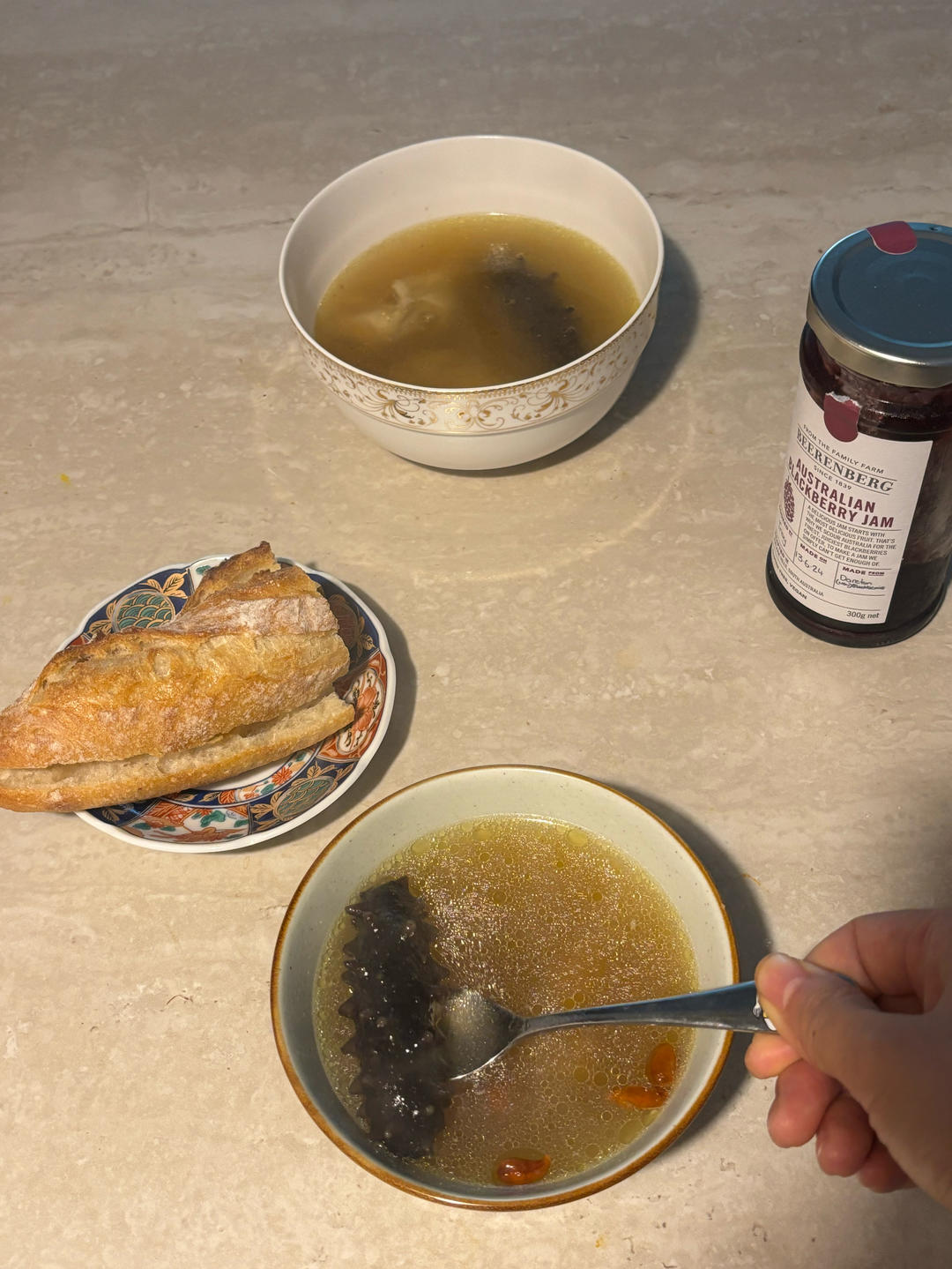 海参鸡汤配法棍。