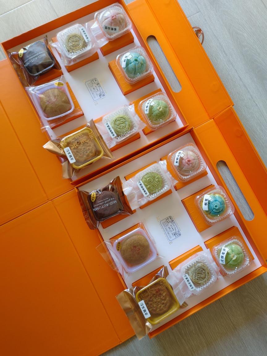 一盒有花酥➕流心➕云腿加广月,花酥冷藏保存,保质期7天左右,吃时复烤,参考蛋黄酥复烤的温度和时间,流心常...