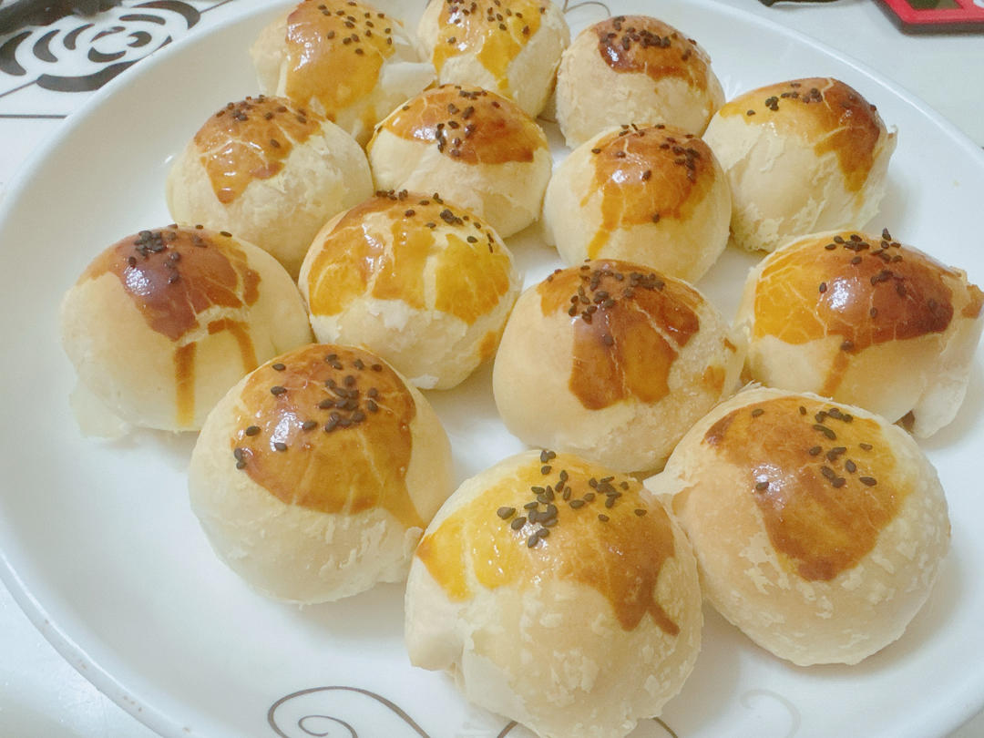 试了下黄油版的老婆饼。还是更喜欢猪油版的,更酥更香😀