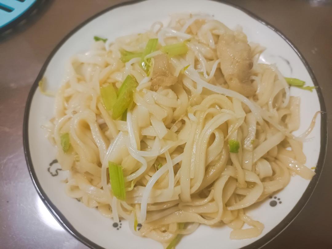 肥肉炼出油炒了河粉,瘦肉和番茄丝瓜煮了汤,一个人的午餐很简单。