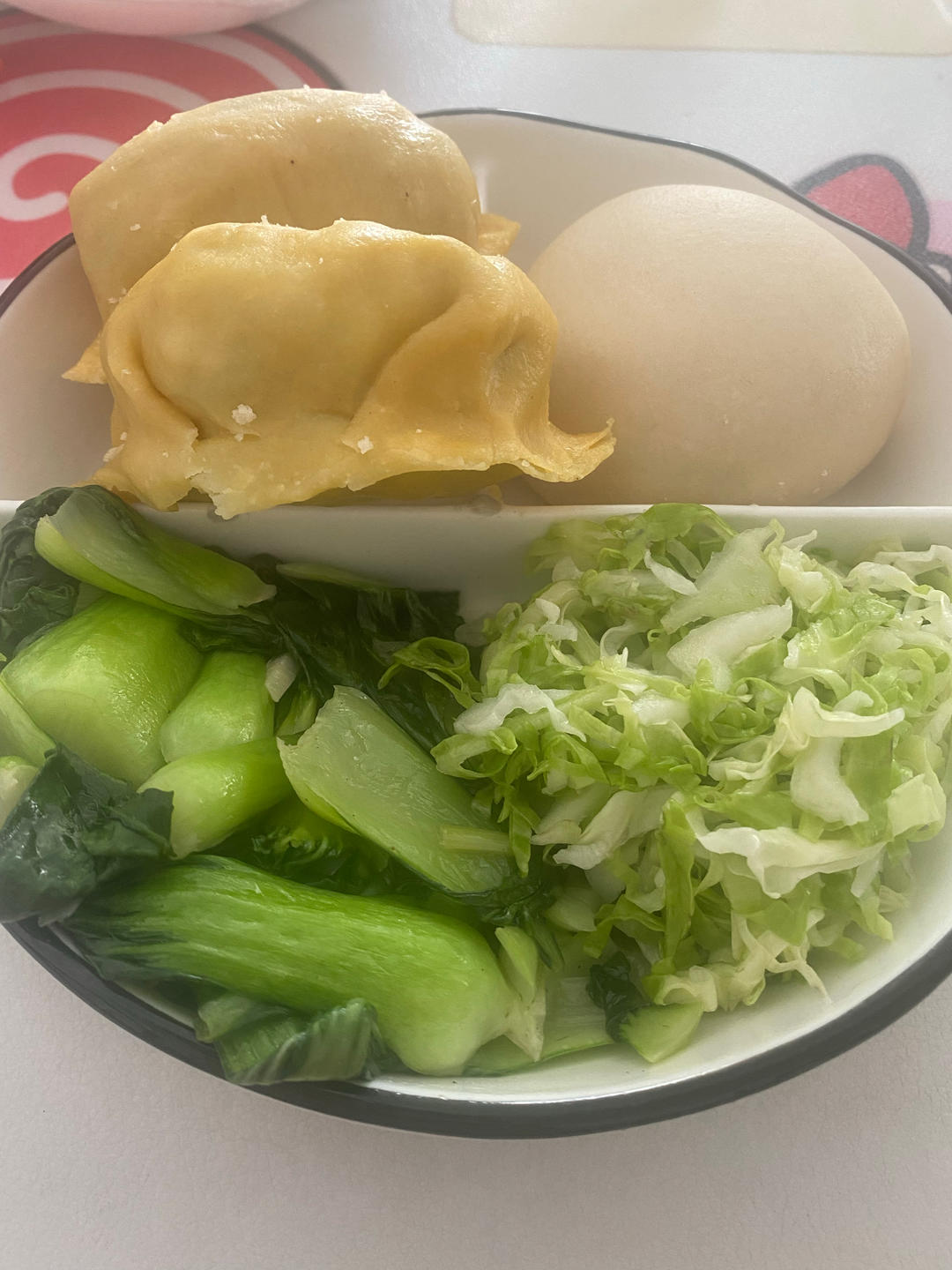 今天的两人午餐尝试解锁了两道新菜:蒜泥白肉,香菇酿虾滑。