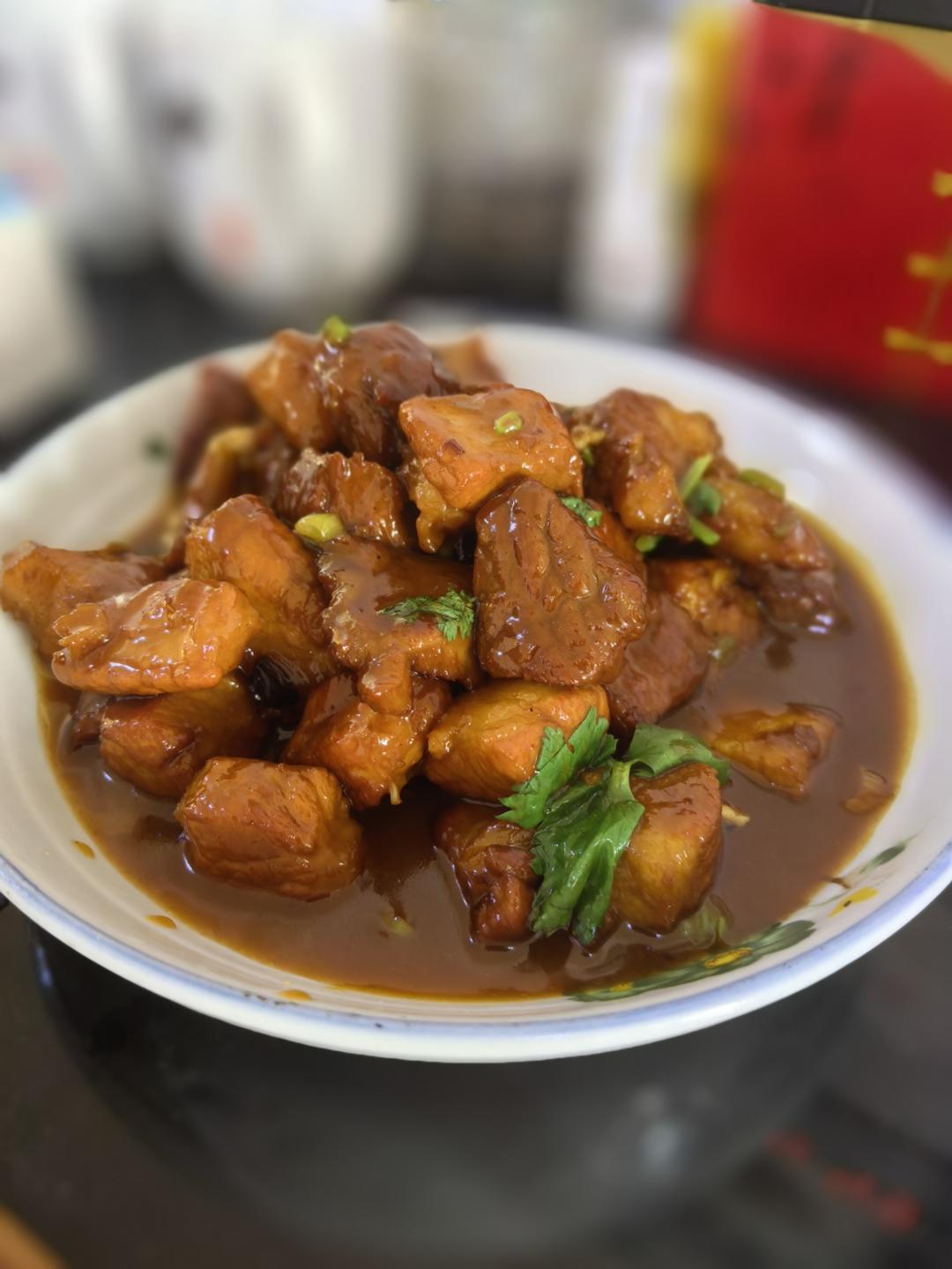 瘦肉还是有点儿硬,回头换肉再试一次。总体上色泽很好,味道特别香,太下饭啦。