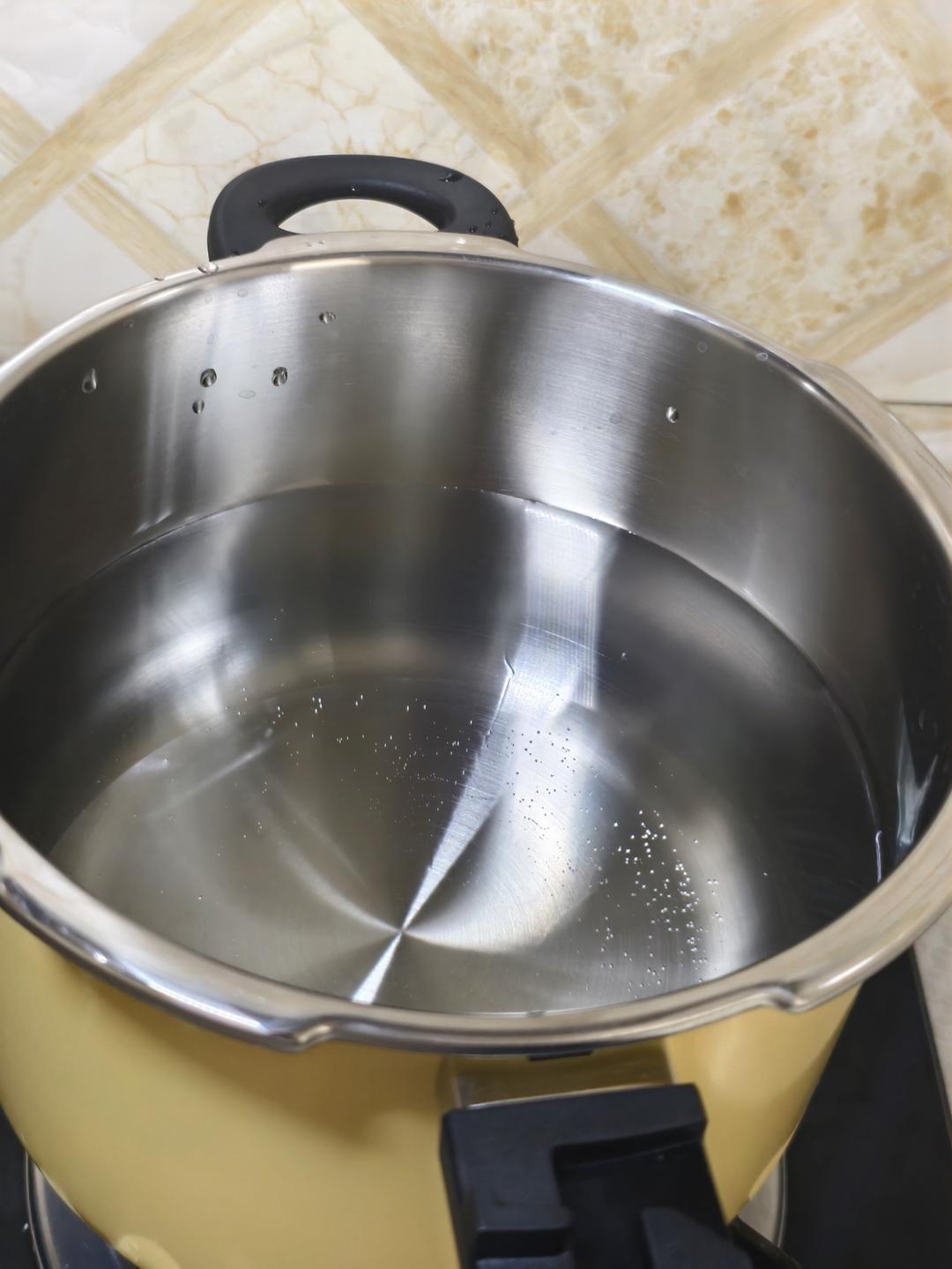 焯水10分钟同时高压锅热水~准备调料:花椒 八角 桂皮 白芷 肉蔻 山楂 葱白 生姜 大蒜带皮 冰糖