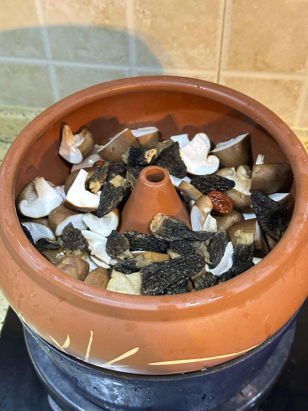 鸡肉用盐抹匀了在摆放的,好喝的汤,就是中途水干了,躺不多,下次多放些水。