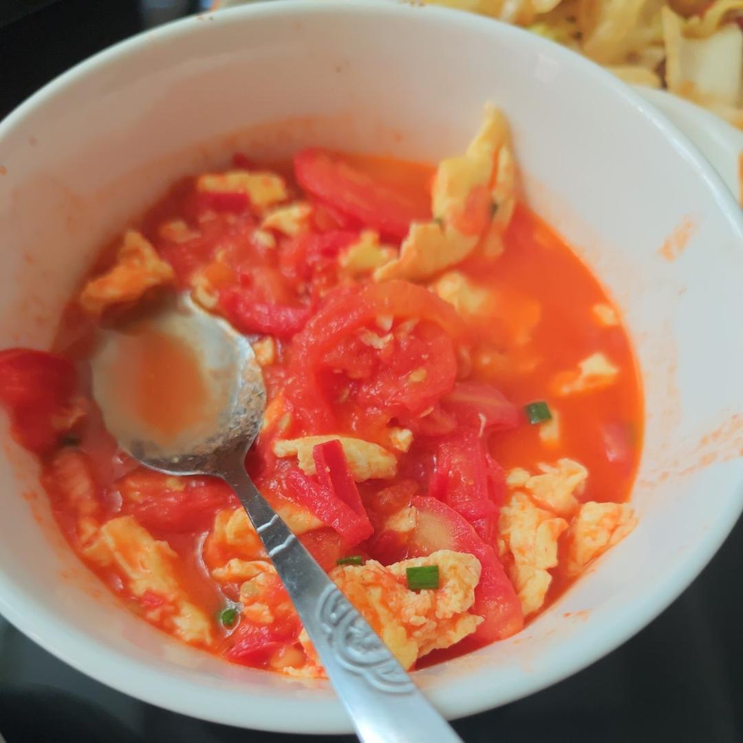 应该把馕吃点先的,现在这个水太多了,变成番茄蛋汤了