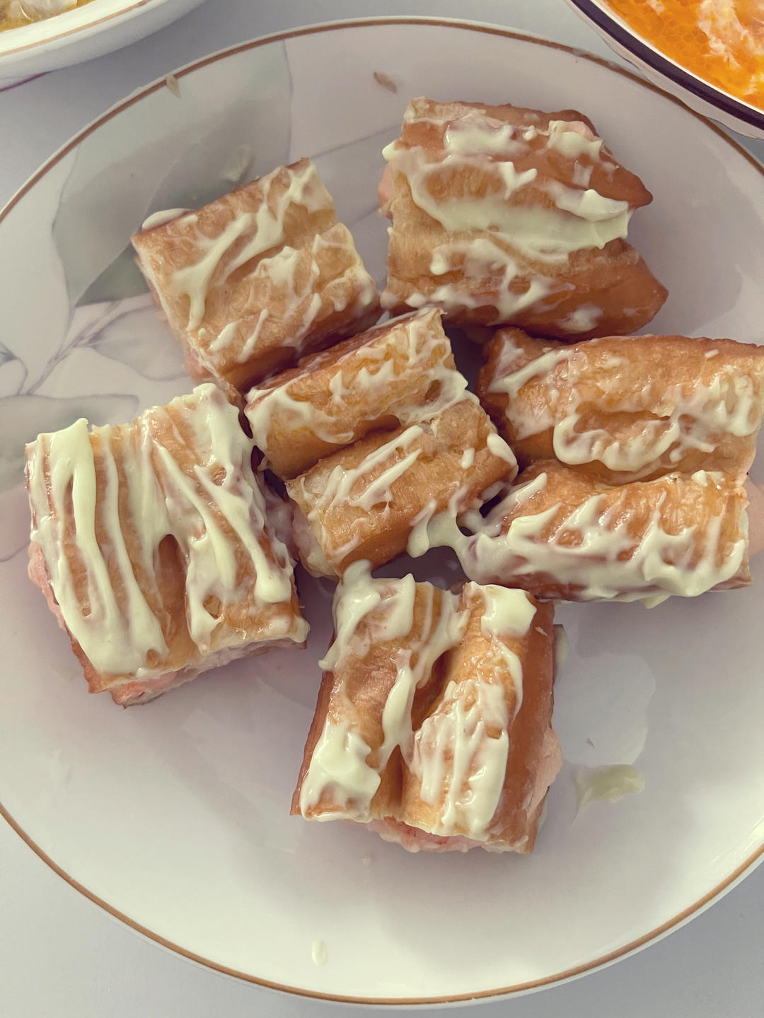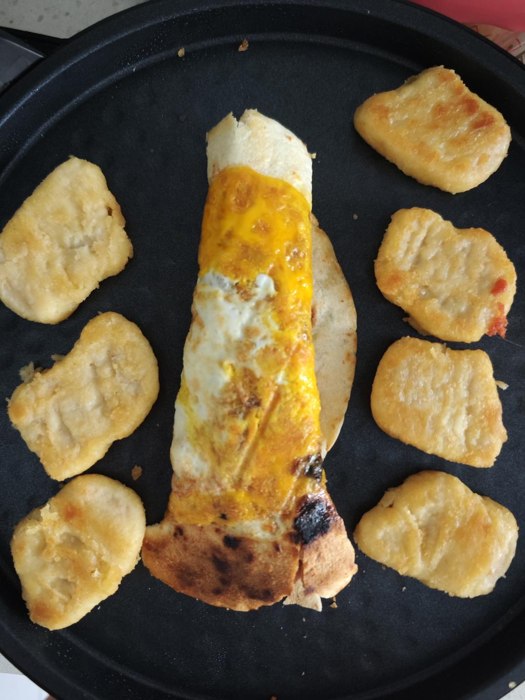薄饼加鸡蛋加火腿肠抹酱,复烤鸡块,姜撞奶失败了,跟短视频学的,不知道为啥,无语😭