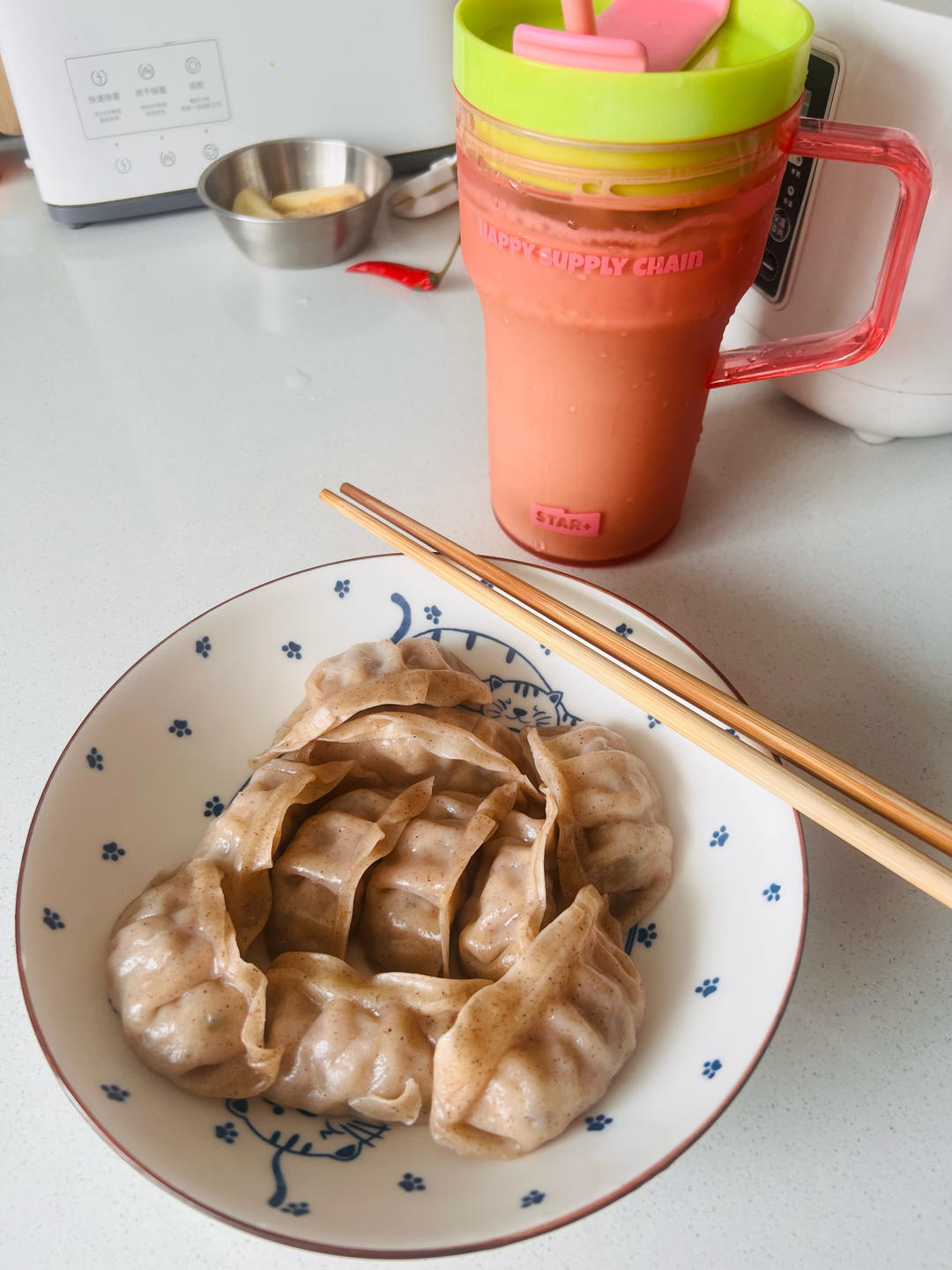 冰拿铁,蒸饺