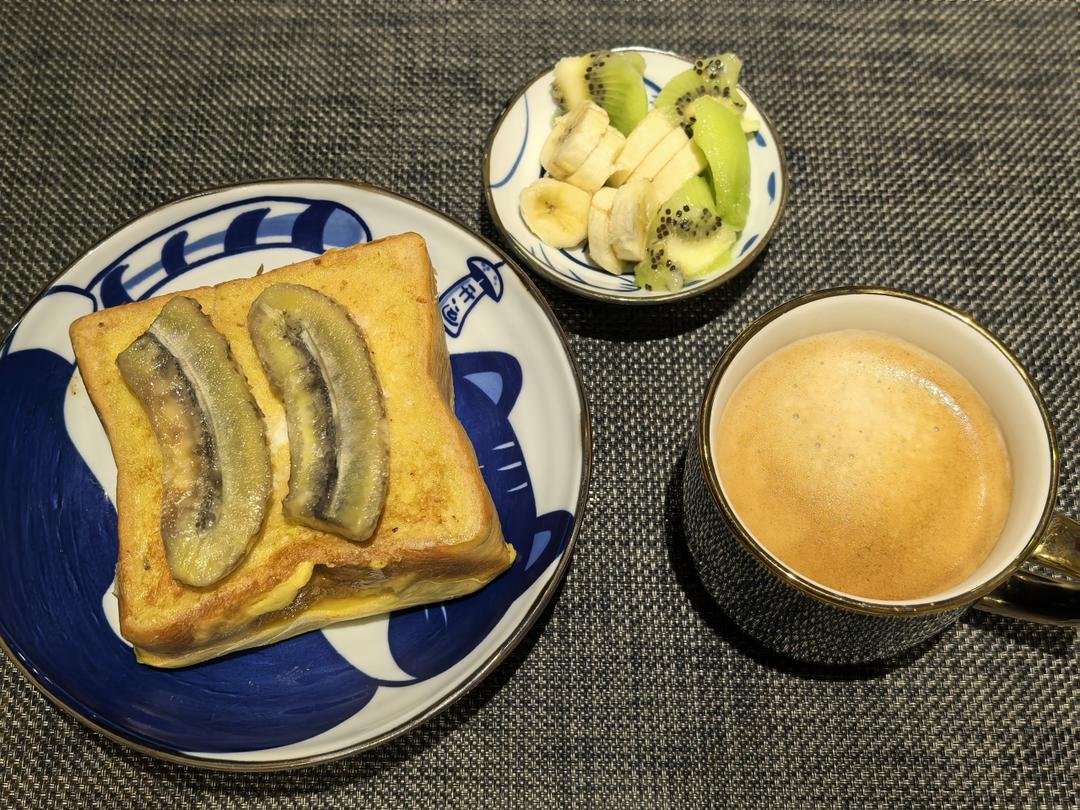 牛奶鸡蛋香蕉煎厚切🥪+香蕉🍌+猕猴桃🥝+美式☕