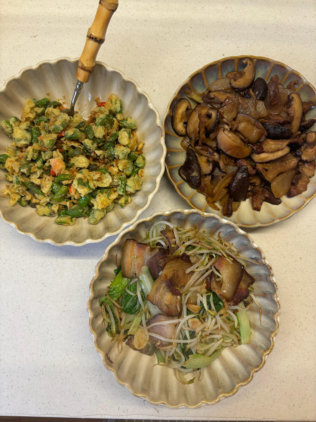 把冰箱里的菜收拾了一下,做了三个菜出来。面炕辣椒真的挺好吃的。以前怕辣不敢吃很辣的辣椒。这个是婆婆种的,有点辣。一直在冰...