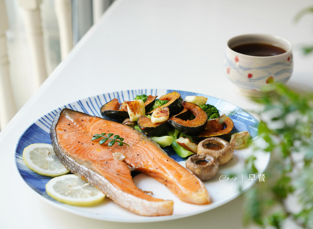 尝试用烤的方式做三文鱼,同时把贝贝南瓜和口蘑一起烤好,省心不少。关键是肉质依然鲜美