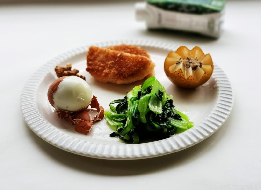 2025.10.9日早餐:饼,小油菜,煮蛋,核桃,牛奶,猕猴桃。#早餐•20...