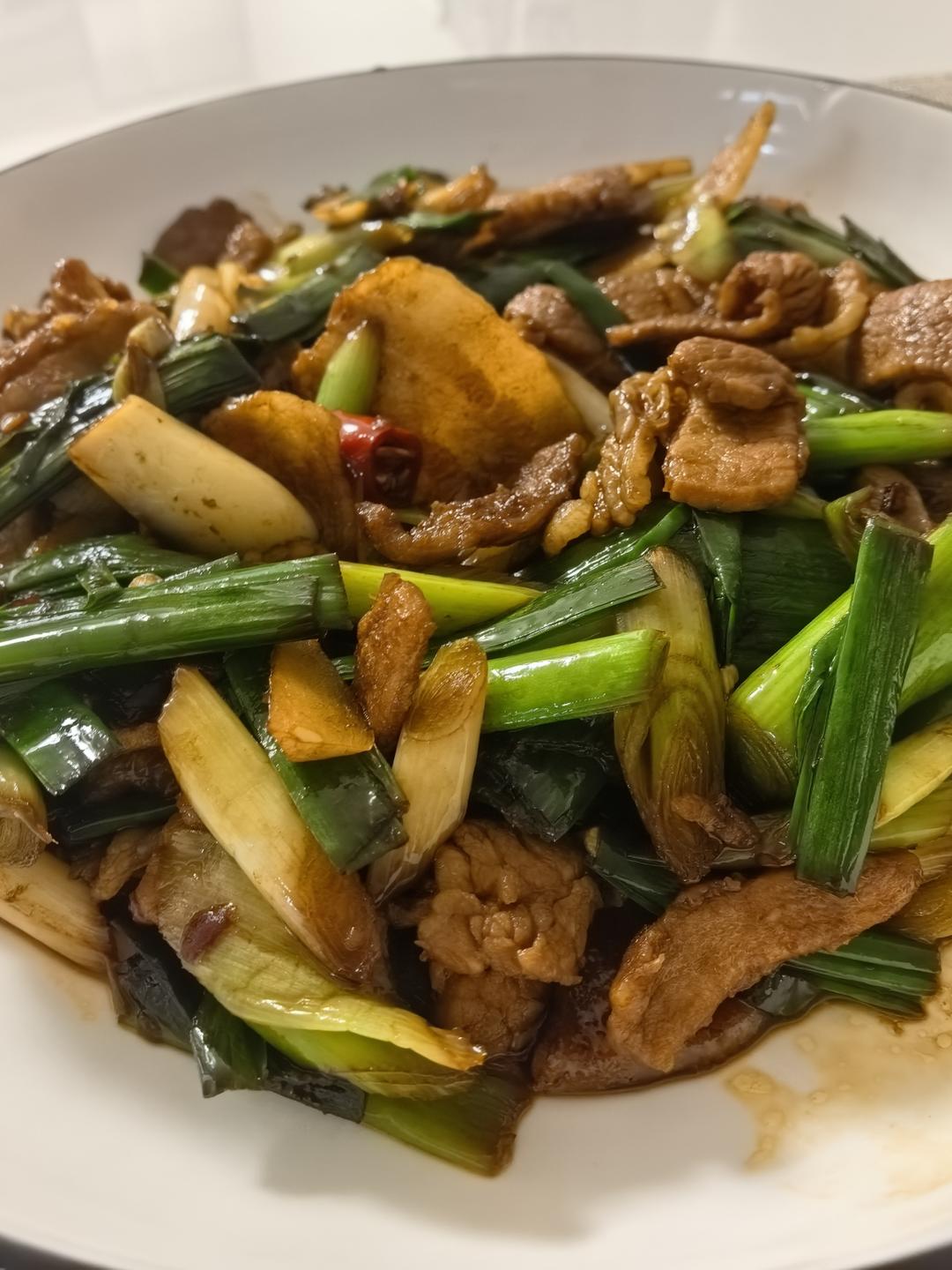 放了一丢丢郫县豆瓣酱 蒜叶有点老 五花肉片买的现成的 偏瘦 好像不怎么出油 ...