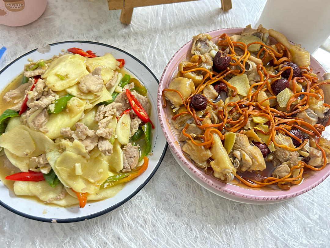 茭白炒肉 虫草花蒸鸡