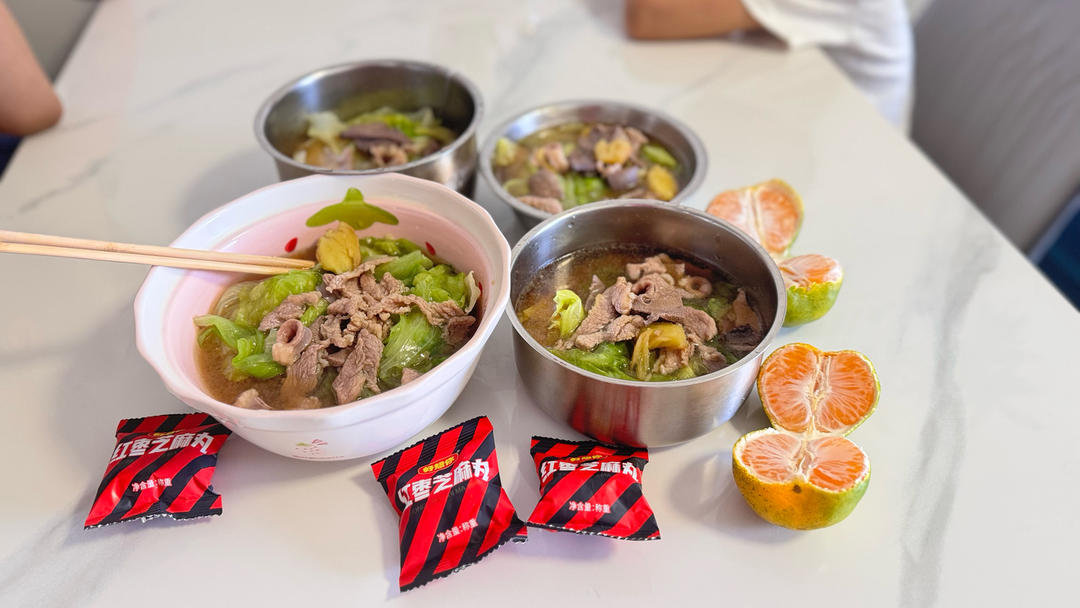 牛排鸡蛋青菜面,还是面条吃着方便