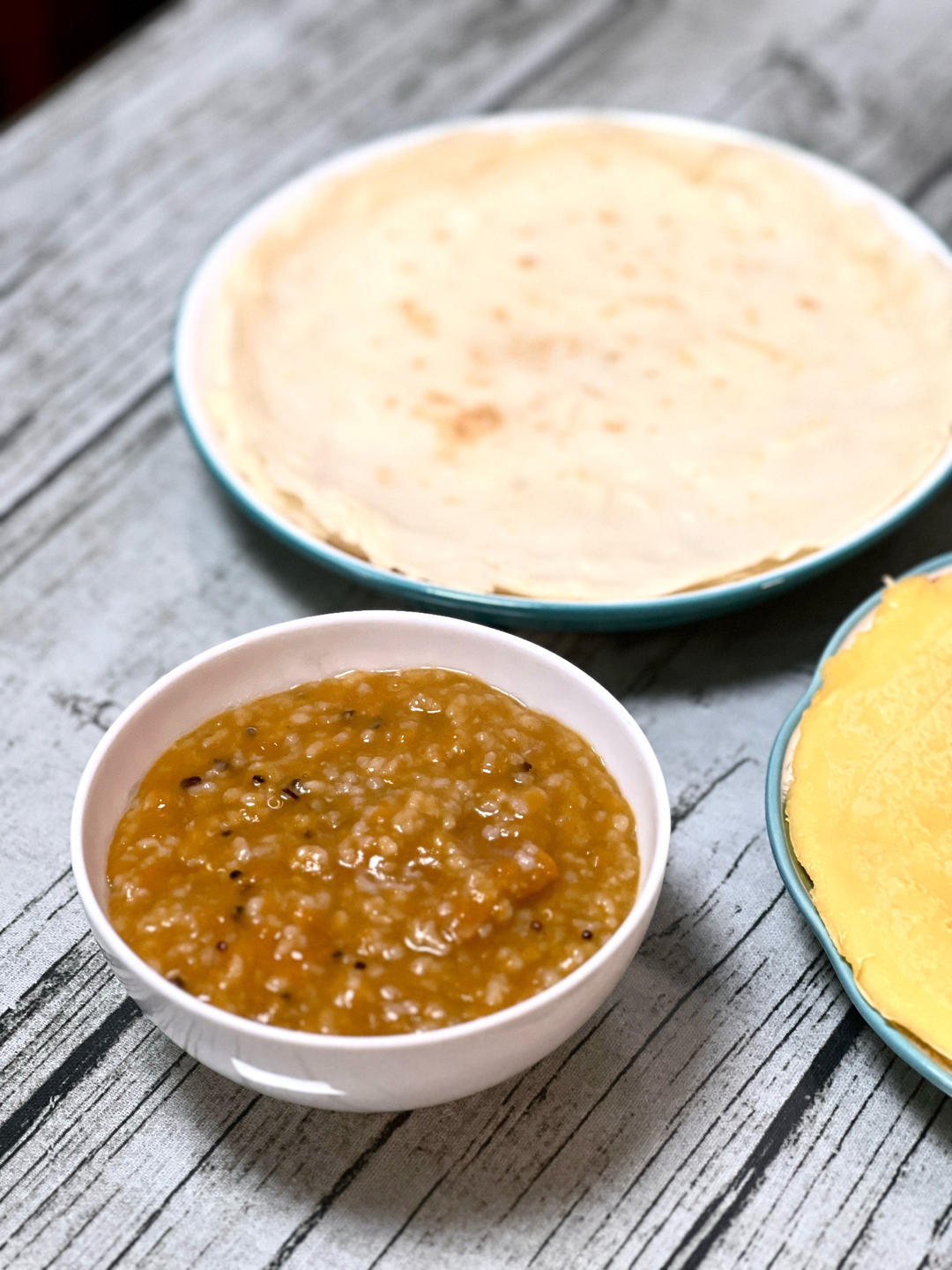 无油摊饼,饼分双色,黄清相宜,各取所好