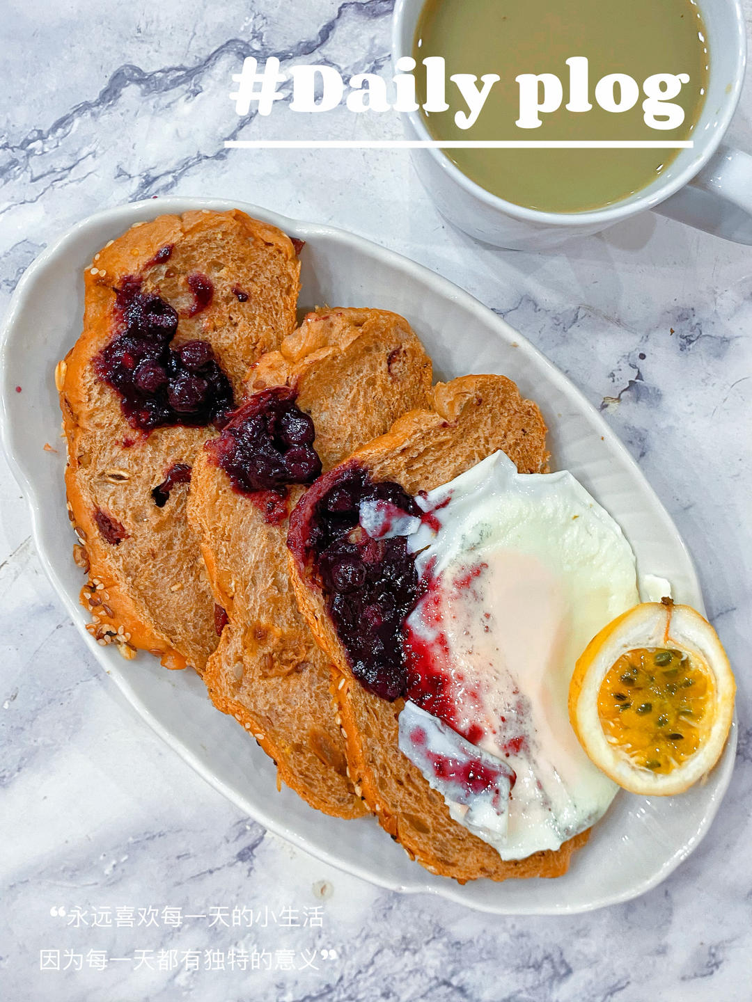 早:🍵抹茶🍳🍞全麦谷物吐司&零脂蓝莓酱