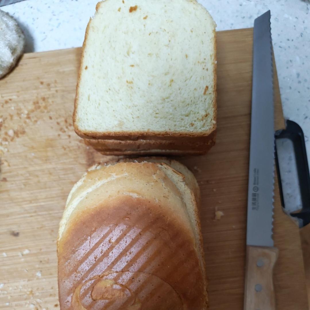 真不错,第一次做出入炉后还长高了的面包。内里也非常柔软,好好,孩子的三明治有材料了。