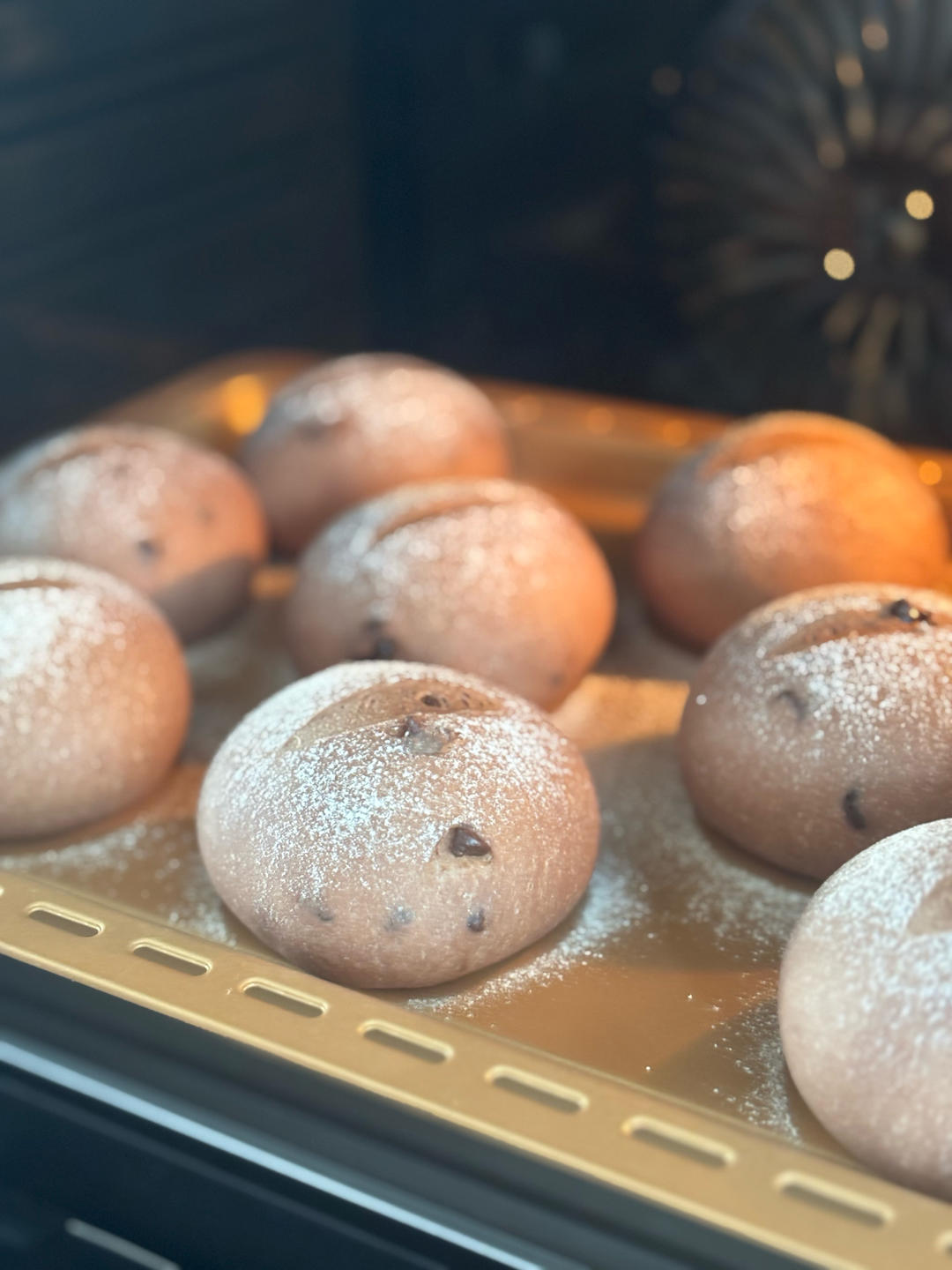 没事嚯嚯面粉,巧克力米面包,高粉和大米粉搭配口感还是挺好的。