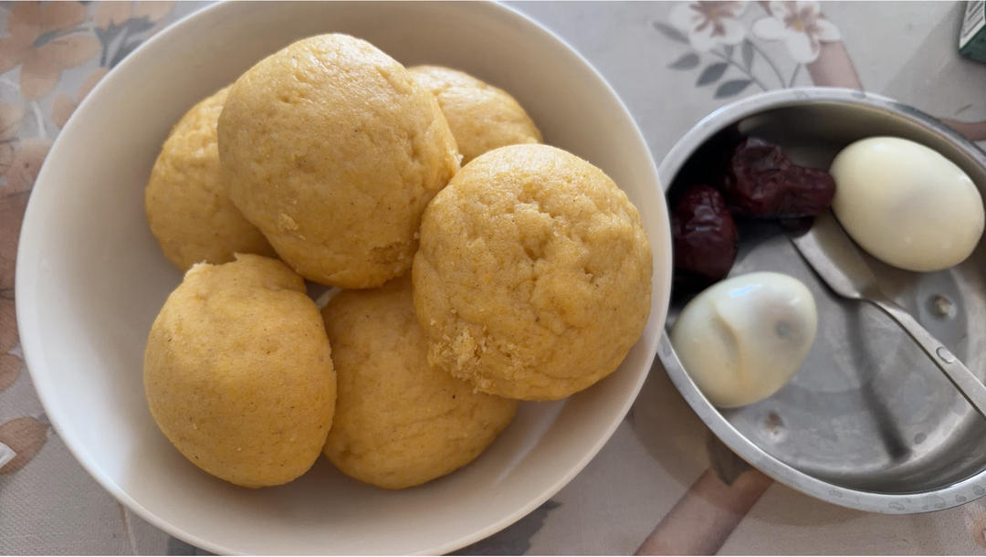昨晚低温发酵,早上起来发的刚好,200g玉米面配100g白面,自制粗粮小馒头,顺带蒸大枣和鸡蛋。#早餐•2025年10月...