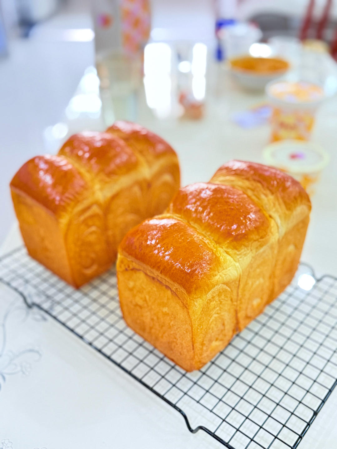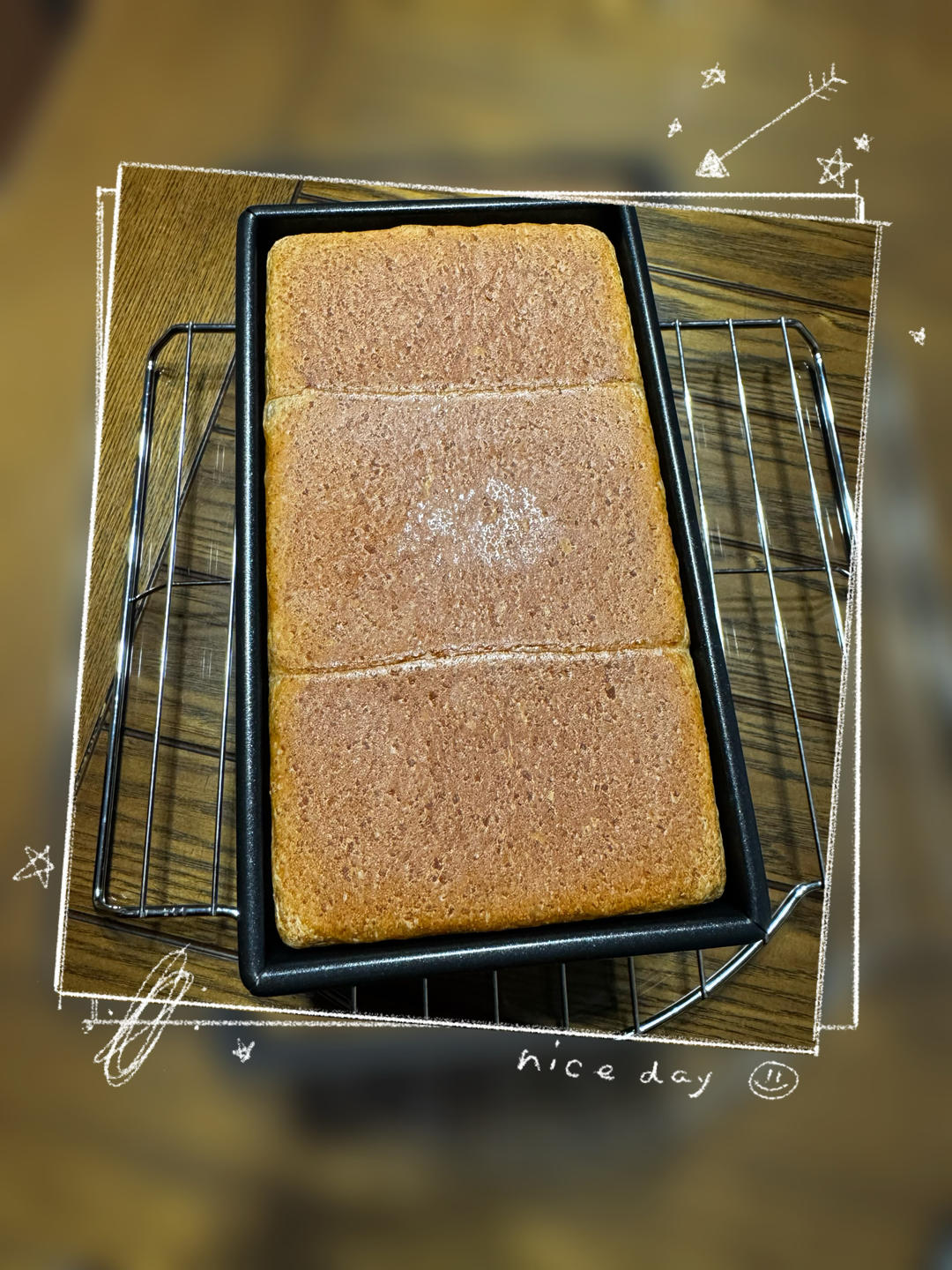 发酵有点点过了,没有好看的圆边了,170度26分钟,50克水用一个鸡蛋代替