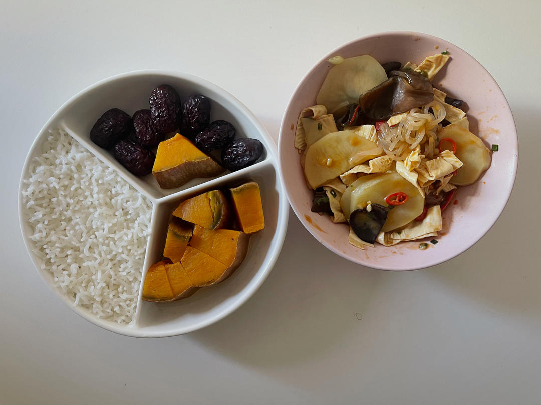 🥣南瓜➕红枣➕米饭➕麻辣拌