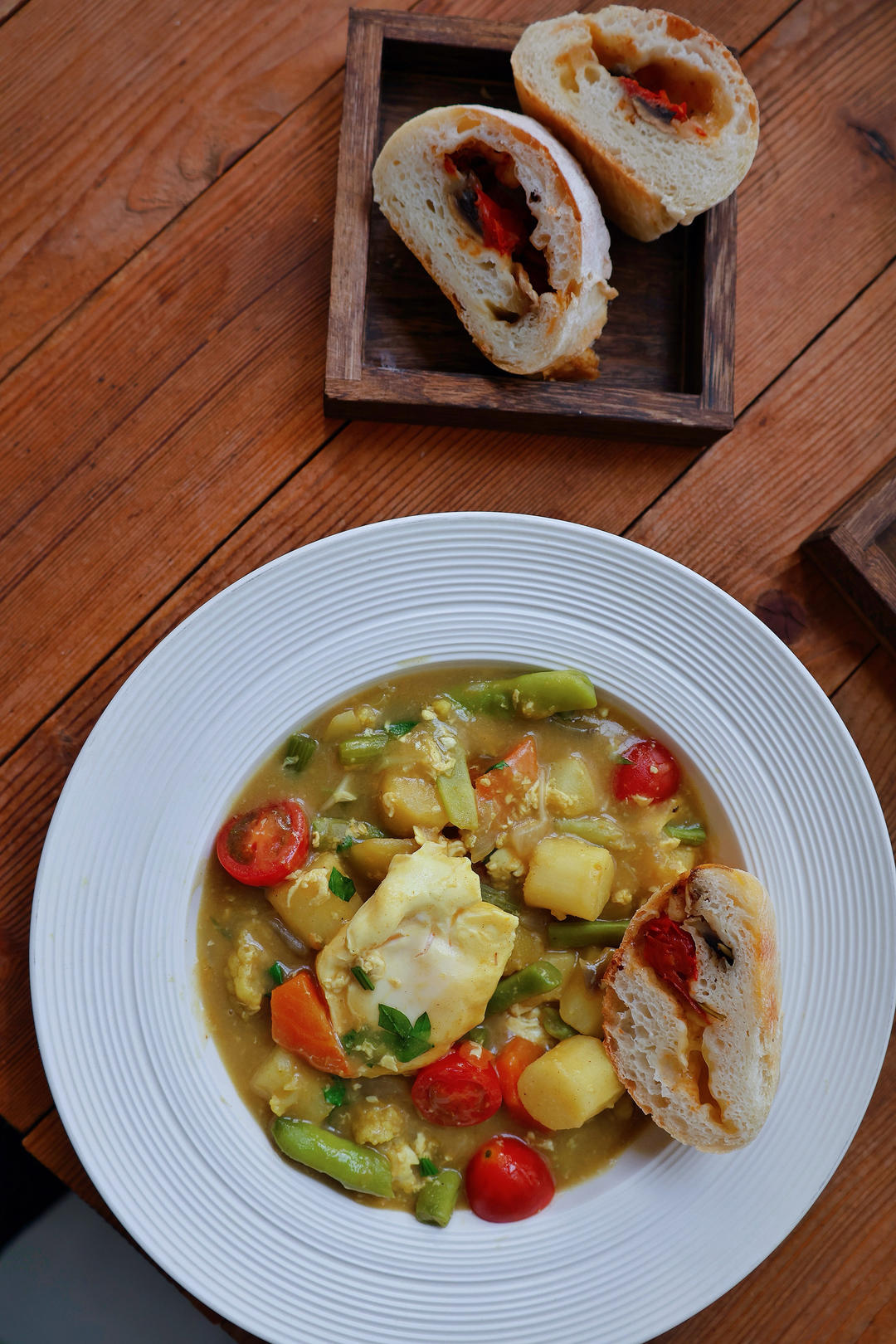 沛姿五谷蛋白粉,口蘑千禧果芝士恰巴塔,咖喱时蔬