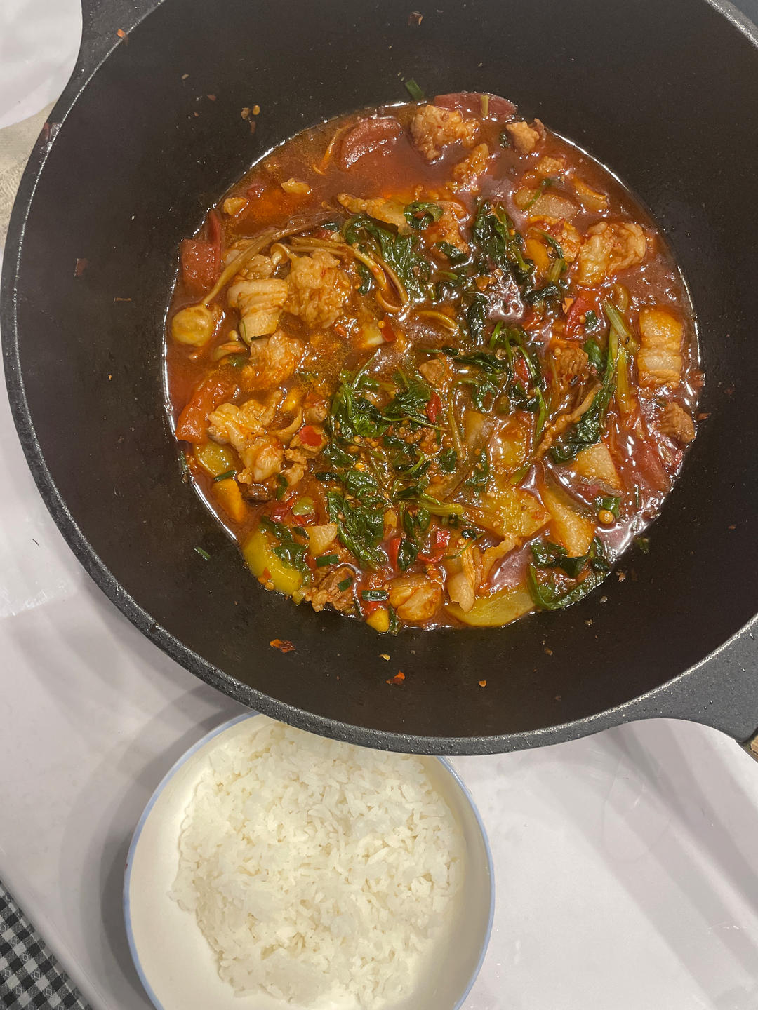 鸡半只,墨鱼一只,咸排骨几块,羊肚菌、虫草花炖汤
