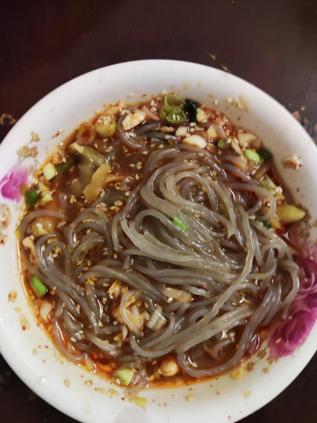 炒牛肉的时候先放了蒜片小米辣和姜丝