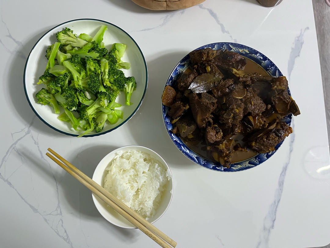 炖排骨(1400g)+盐炒西兰花