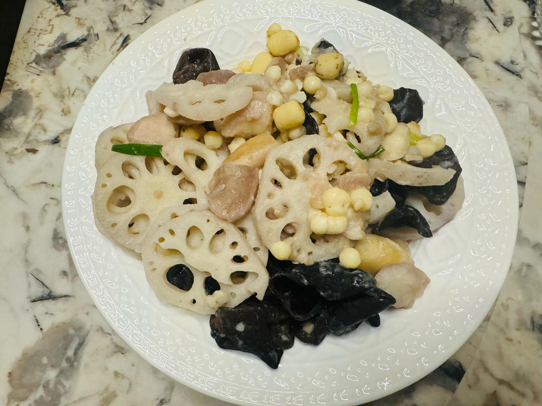 加了木耳和鸡头米,适合这个季节的菜