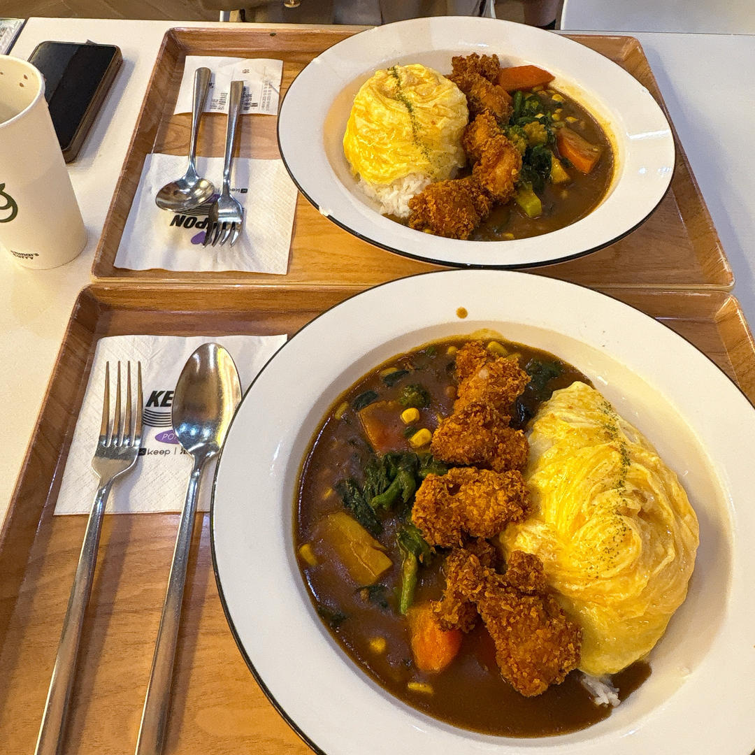 今晚吃咖喱蛋包饭咯