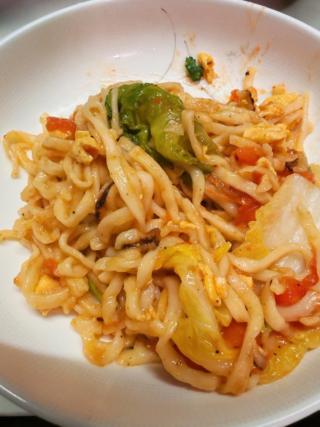 西红柿+鸡蛋+香菜的味道真香,但是焖面下...