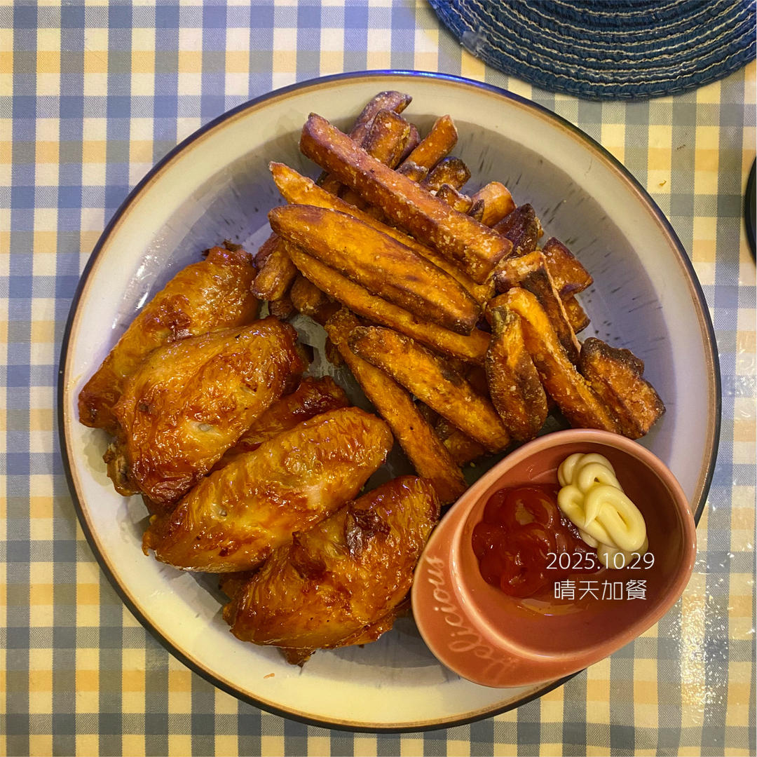 小孩哥的加餐:奥尔良烤鸡翅➕红薯条