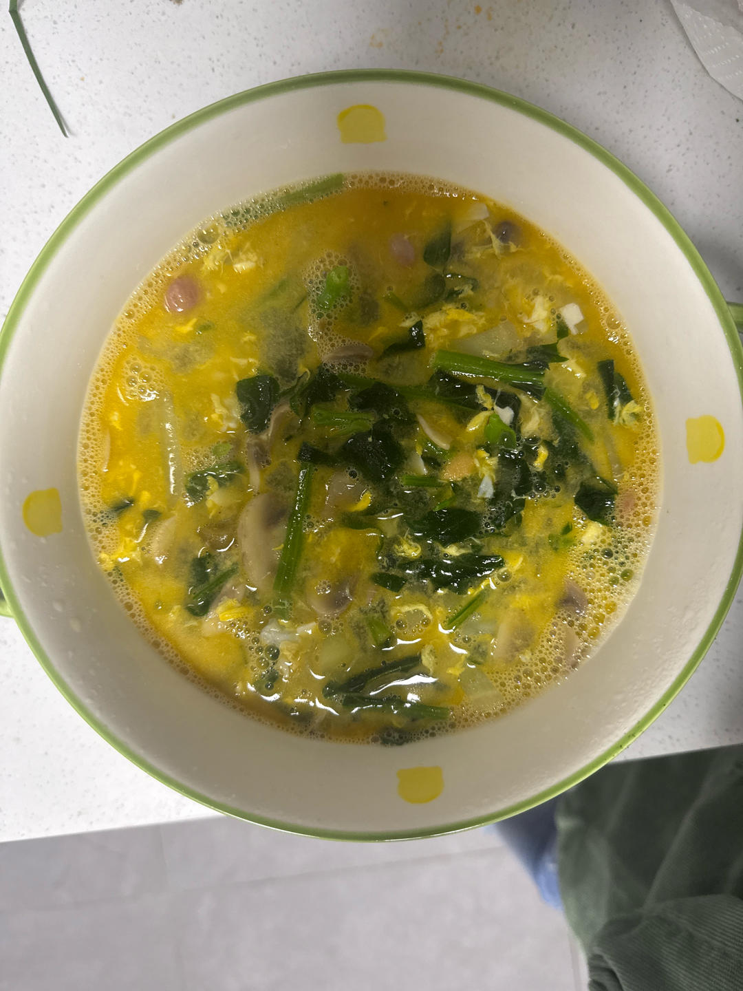 鸡毛菜蘑菇蛋汤