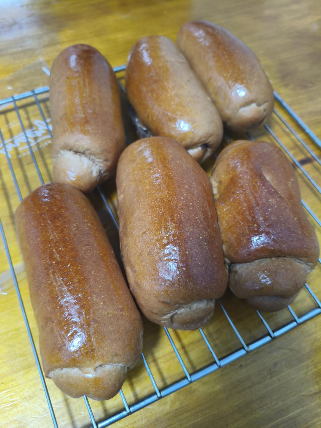 为了方便娃带去学校,都做了小面包,夹馅耐高温巧克力豆、巧克力甘纳许,表面刷鸡蛋液。梦力B和凯瑟琳一样一半,提前水合一晚,...